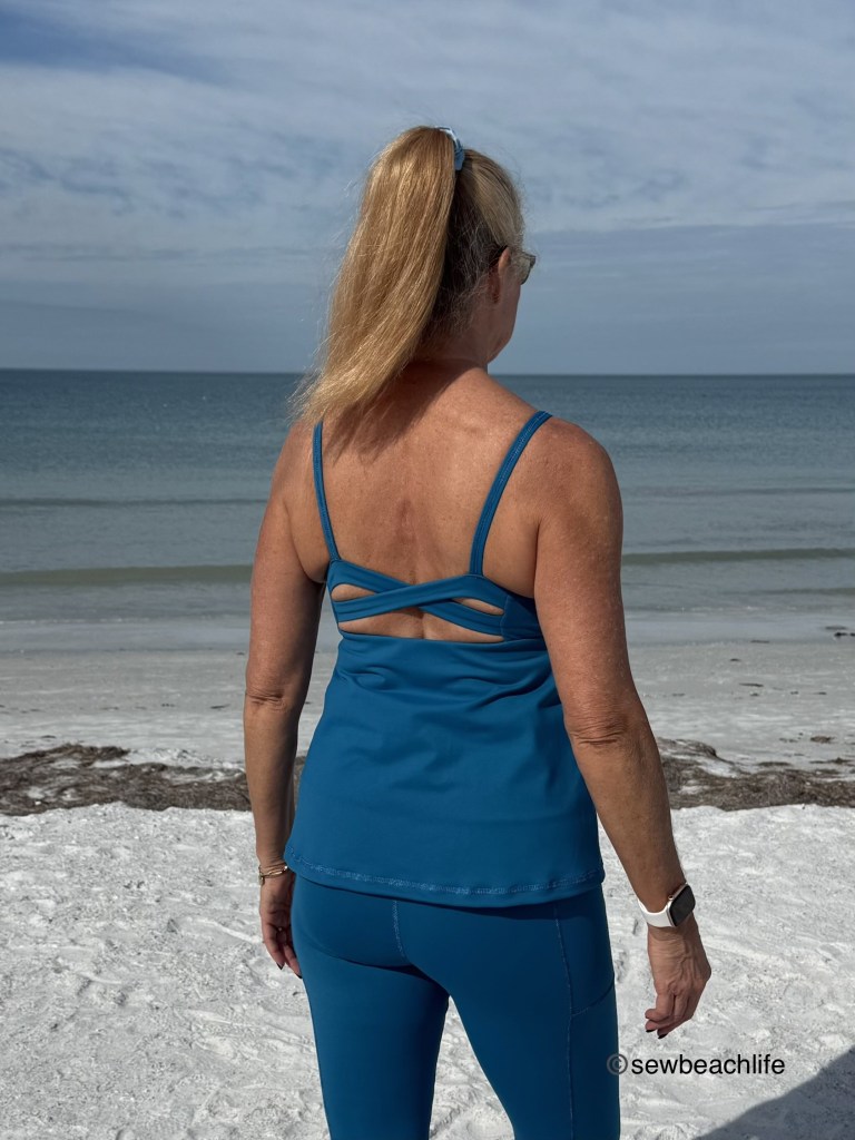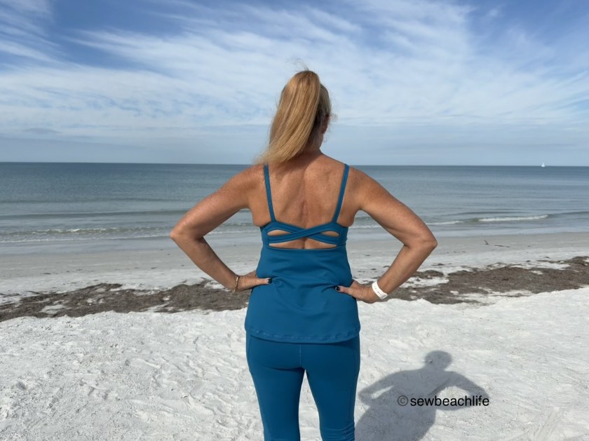 I’ve made numerous workout tops using the Greenstyle Power Sports Bra pattern, and love the front princess seams. So I figured, why not mash the two patterns? The side seams are not the same height, so there was a little bit of adjustment to get them to align. It worked out well to get a fun look in the front and the back, and it gave me more seam lines to reverse triple coverstitch.