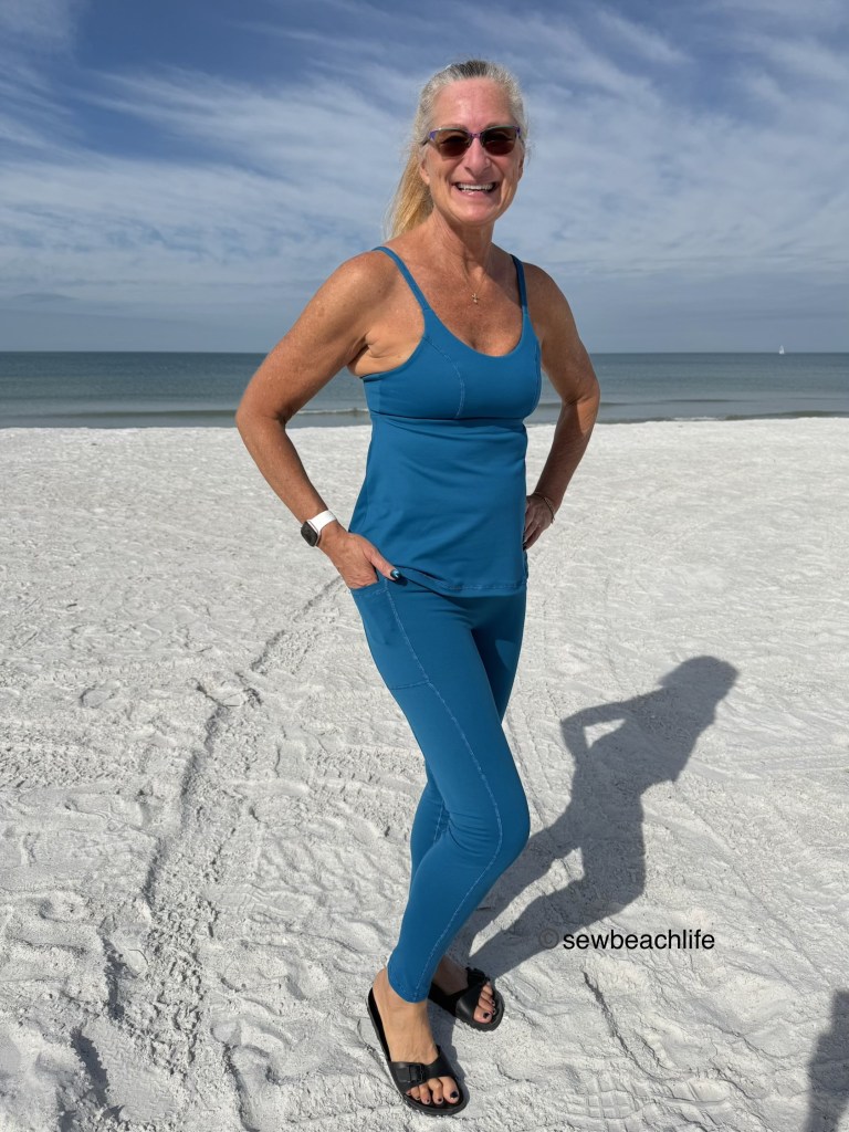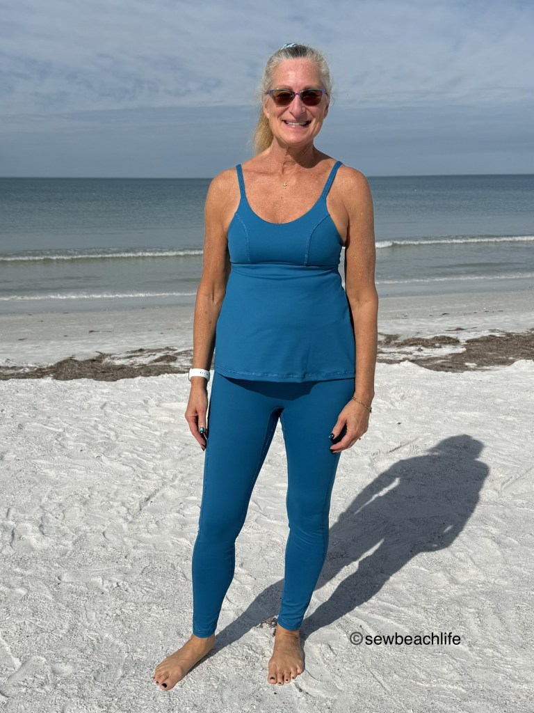 This is the second pair of Sinclair Patterns Glide Leggings that I’ve made. I love that they have pockets and a gusset. It’s nice that they have tall files as well as regular and petite. These are a size 10 tall, and they actually may be about a half inch too long. To see the first pair I made in black supplex, see the previous post. I wore them on my trips to and from Michigan last month. They were comfortable during the flights, long layovers, and walking around in airports.